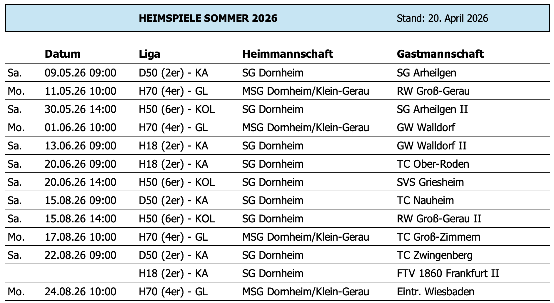 Auf dieser Seite finden Sie die neuesten Informationen über unseren Verein, das Vereinsleben, unseren Mannschaften und vieles mehr ...